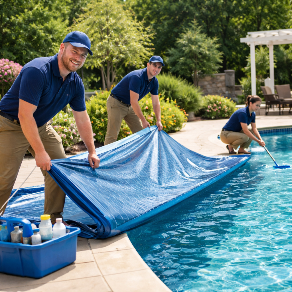 Our technicians don’t just pull off a cover; they perform a precision startup. From priming your equipment to checking for winter line damage, we ensure your system is ready for peak performance. By booking early, you avoid the mid-summer rush and step into a balanced, clean pool the moment the weather turns. All service work is pre-paid at the time of booking to ensure your spot on our high-demand schedule.